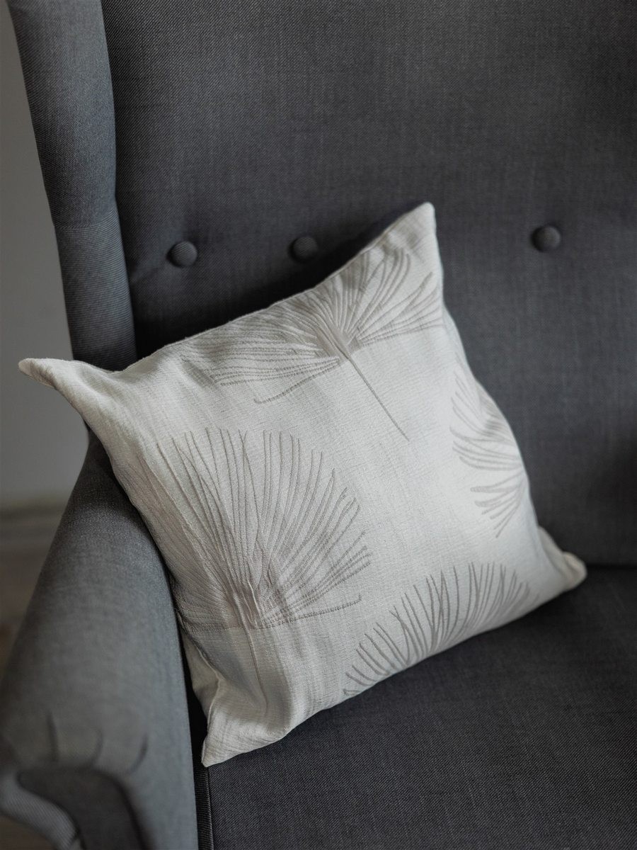 Bílý polštář s šedými květy skvěle zapadne do Vaší chill zóny.